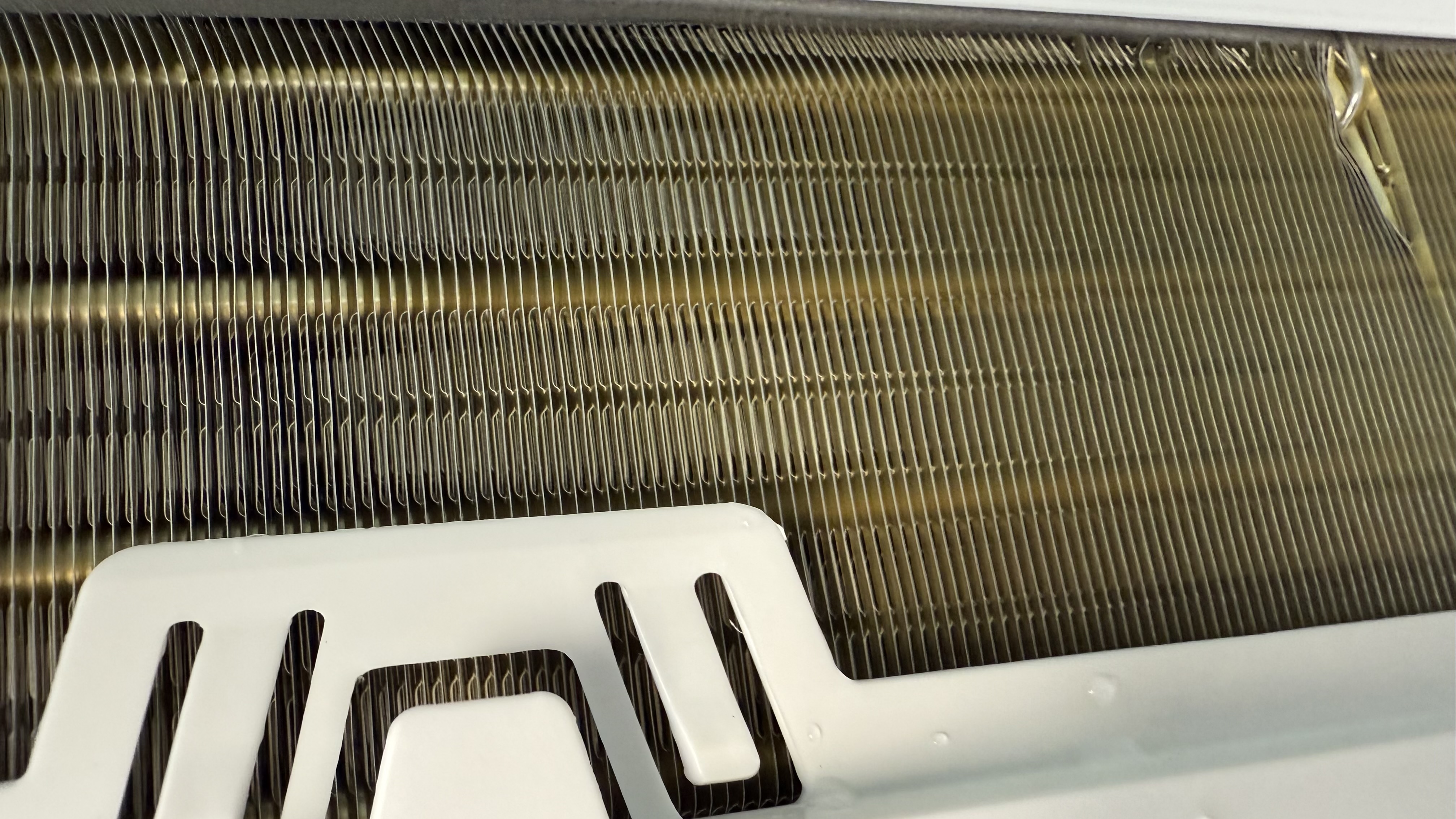 Так выглядит загрязнённый испаритель внутреннего блока. Обычно эта деталь скрыта за пластиком, и без его снятия её никак не очистить. Даже если она полностью покрыта пылью и грязью — снаружи этого не видно. Если вам чистили кондиционер, не снимая пластиковые панели, значит, сделали это плохо.